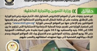 متابعه – ندا حامد تداولت بعض المواقع الإلكترونية وصفحات التواصل الاجتماعي أنباء بشأن تقديم وزارة التموين منح مالية للمواطنين بقيمة 2500 جنيه مقابل تسجيل بياناتهم الشخصية عبر الموقع الإلكتروني للوزارة، وقد قام المركز الإعلامي لمجلس الوزراء بالتواصل مع وزارة التموين والتجارة الداخلية، والتي نفت تلك الأنباء، مُؤكدةً أنه لا صحة …