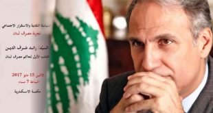 كتب/عادل خليف تنظم مكتبة الإسكندرية بالاشتراك مع قنصلية لبنان العامة بالإسكندرية محاضرة بعنوان “السياسة النقدية والاستقرار الاجتماعي: تجربة مصرف لبنان”، يلقيها السيد رائد شرف الدين؛ النائب الأول لحاكم مصرف لبنان، وبحضور السيد/ اسامة خشاب قنصل عام لبنان وعميد السلك القنصلي بالإسكندرية وذلك الساعة السابعة مساء غدا الاثنين الموافق 15 مايو …