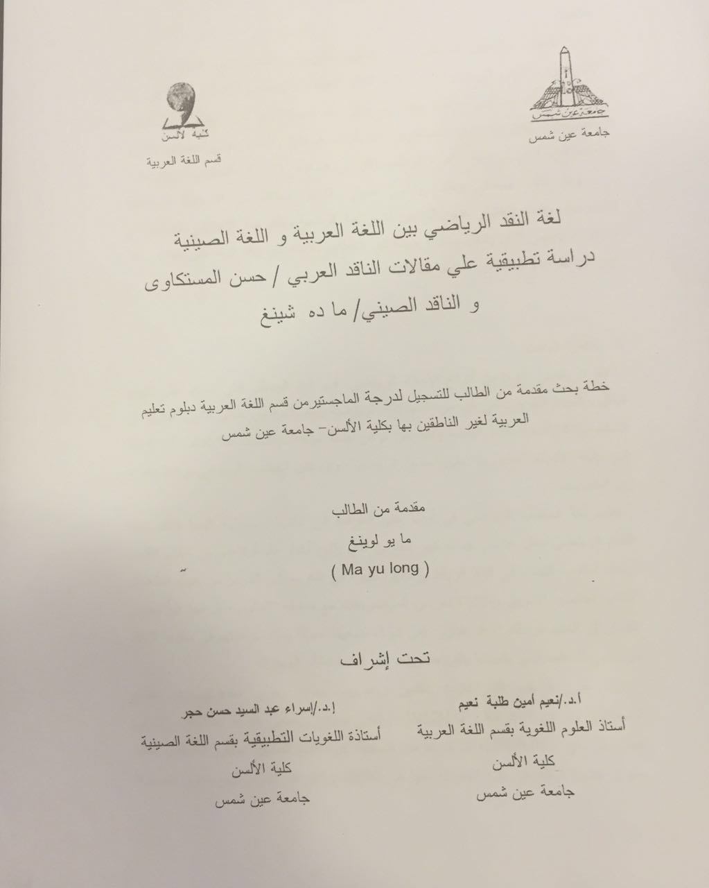 تأكيداً على دور النقد الرياضى فى تطور الرياضة فى الشعوب ، اصدر طالب صينى فى جامعة عين شمس خطة لبحث وذلك من أجل التسجيل لدرجة الماجيستير تحت عنوان “لغة النقد الرياضة بين اللغة العربية واللغة الصينية” .