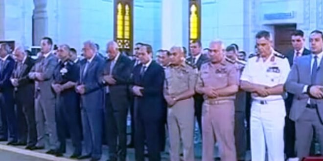 أدى السيد الرئيس عبد الفتاح السيسي رئيس الجمهورية ، صلاة عيد الفطر المبارك ، بحضور الدكتور محمد سلطان محافظ الإسكندرية وذلك بمسجد محمد كريم بمقر قيادة القوات البحرية برأس التين فى محافظة الإسكندرية، وسط حضور من كبار رجال الدولة على رأسهم المهندس شريف إسماعيل رئيس مجلس الوزراء، والدكتور على عبد العال رئيس مجلس النواب، والفريق صدقى صبحى القائد العام للقوات المسلحة ووزير الدفاع ، والدكتور محمد مختار جمعة وزير الأوقاف ، وعدد من الوزراء وكبار المسئولين.