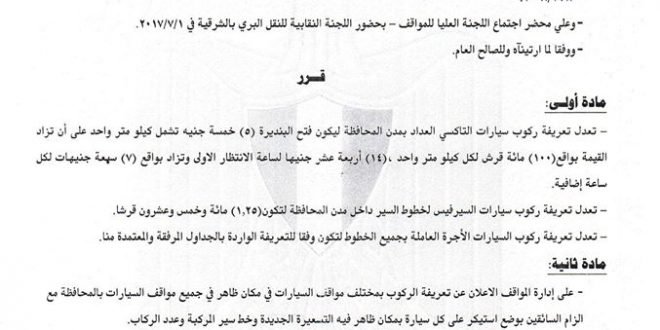 الوسومتحديد تعريفة الركوب الجديدة الخاصة بتاكس العداد والسرفيس والإنتظار داخل نطاق الشرقية