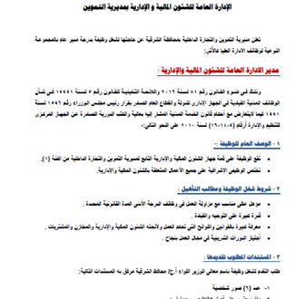 • تختص الوظيفى الإشرافية على جميع الأعمال المتعلقة بالشئون المالية والإدارية.