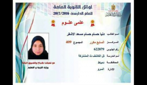 – السابع مكرر/ إسراء رضا السعيد فرج ادارة تمى الأمديد مدرسة عبد السلام أبو النجا الثانوية المشتركة تاج العز بمجموع 409