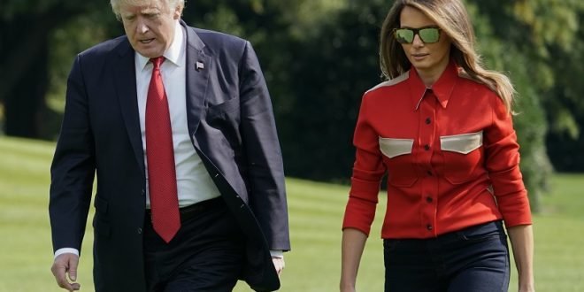 President Donald Trump and first lady Melania Trump walk across the South Lawn of the White House in Washington upon their arrival, Sunday, Sept. 10, 2017. Trump, his family and staff where returning from presidential retreat at Camp David, Md. (AP Photo/Pablo Martinez Monsivais)