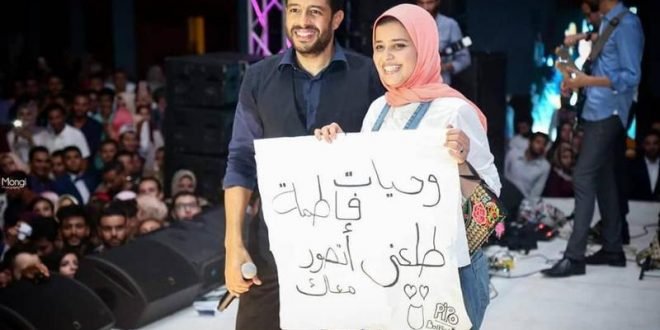فاجأت إحدى المعجبات الفنان محمد حماقي خلال حفلته التي أحياها بمناسبة تخرج دفعة جديدة من كلية التجارة في جامعة الاسكندرية، عندما رفعت لافتة كتبت عليها طلباً لتلتقط صورة معه.
