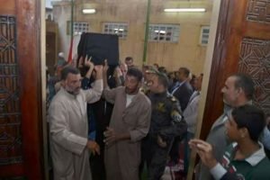 وجدير بالذكر أدى الجموع صلاة الجنازة على الشهيد بمسجد الحاجة فاطمة هانم، ثم توجهوا في موكب جنائزي مهيب إلى مقابر العائلة بالقرية، مرددين الهتافات المنددة بالإرهاب والمطالبة بالقصاص والقضاء على الإرهاب.