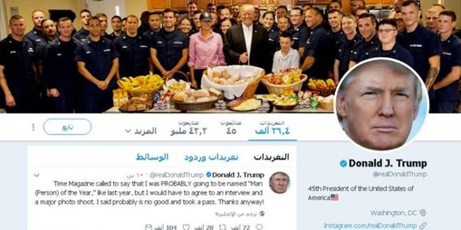 تجدر الاشارة إلى أن مجلة تايم اختارت ترامب “شخص العام” لعام 2016 لتأثيره على المجتمع الأمريكي قبل أن يتولى منصبه، وذلك بعد فوزه المفاجئ في الانتخابات الأمريكية في العام الماضي.