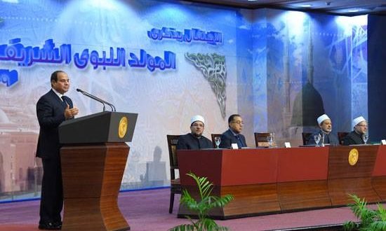 شهد الرئيس عبدالفتاح السيسي، احتفالية وزارة الأوقاف بذكرى المولد النبوى الشريف، بقاعة مؤتمرات الأزهر اليوم الأربعاء، والتى بدأت بقراءة آيات من القرآن الكريم، بحضور الدكتور أحمد الطيب شيخ الأزهر الشريف، والقائم بأعمال رئيس الوزراء، المهندس مصطفى مدبولى، والدكتور محمد مختار جمعة وزير الأوقاف، والدكتور شوقى علام مفتى الجمهورية.