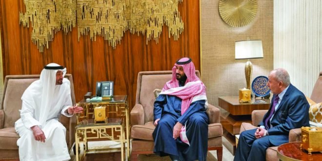التقى الشيخ محمد بن زايد آل نهيان، ولي عهد أبوظبي، نائب القائد الأعلى للقوات المسلحة، و الأمير محمد بن سلمان بن عبد العزيز، ولي العهد، نائب رئيس مجلس الوزراء، وزير الدفاع بالمملكة العربية السعودية الشقيقة في الرياض، أمس، مع رئيس حزب التجمع اليمني للإصلاح العقيد محمد عبد الله اليدومي، والأمين العام للحزب الأستاذ عبد الوهاب أحمد الآنسي.