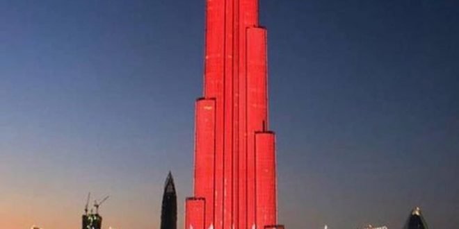 «برج خليفة» في دبي يتزين بعلم مملكة البحرين احتفاء بالأعياد الوطنية المجيدة.