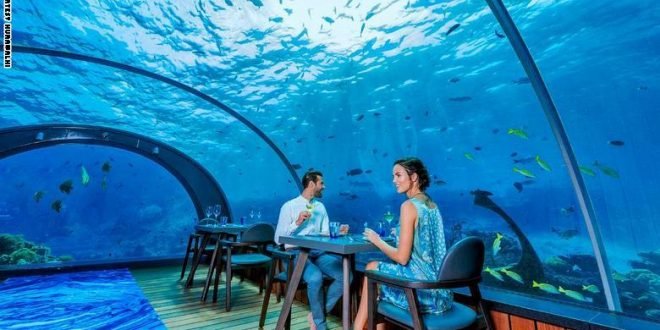 ويقدم المطعم قائمة طعام محددة السعر بمبلغ 200 دولار (قرابة 3540 جنيه مصري) ومنظر طبيعي للشعاب المرجانية، بحسب “CNN”.