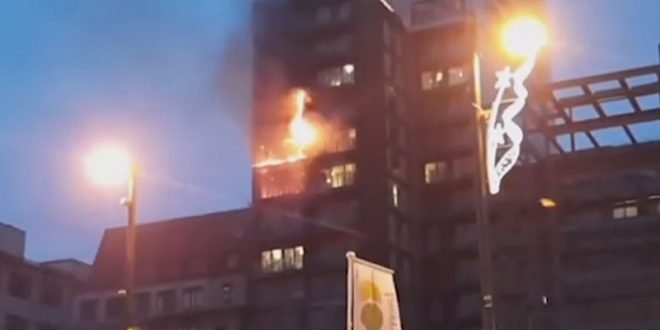 اشتعلا حريق هائل، السبت، في الطابق التاسع من مبنى يضم 12 طابقا في الحي الشمالي من مدينة مانشستر في بريطانيا، وفق ما أظهره فيديو نشرته صحيفة “ديلي ميل” البريطانية.