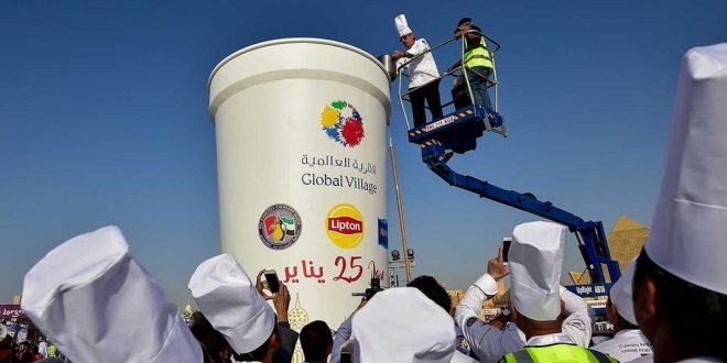 وتطلب إعداد الكوب الضخم – الذي دخل الموسوعة – 12 ساعة من العمل ليتم تقديمه مجانا لأكثر من 45 ألفا من ضيوف القرية العالمية – الوجهة العائلية الأولى للثقافة والتسوق والترفيه في المنطقة، وفقا لما ذكرت وكالة “وام”