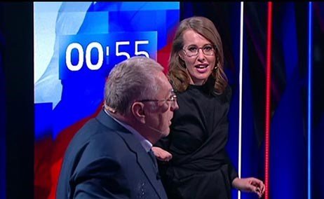 وواصل جيرينوفسكى فى شتم سوبتشاك، ما دفع الأخيرة إلى رشقه بالماء.