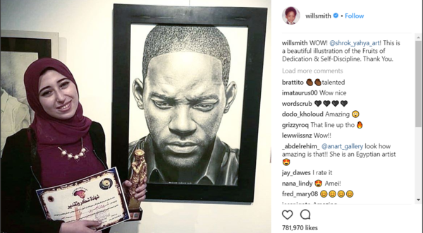 أظهر النجم العالمي ويل سميث صورة لرسم «بورتريه» له بريشة الفنانة المصرية شروق يحيى، وذلك عبر حسابه الرسمي على موقع التواصل الاجتماعي «انستجرام».