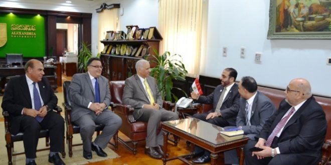 استقبل الدكتور عصام الكردى رئيس جامعة الإسكندرية امس الاثنين 7/5/2018 الدكتور منصور محمد عقيل العور رئيس جامعة حمدان بن محمد بدولة الامارات العربية المتحدة والوفد المرافق له لبحث إمكانية التعاون فى المجالات الحديثة والمتطورة وعمل شراكة بين الجامعتين لانتاج معرفة عربية مشتركة تخدم المجتمع العربى.