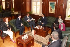 استقبل الدكتور محمد سلطان محافظ الإسكندرية السيد/ لو يونج واى رئيس اللجنة الدائمة للمجلس الوطني للنواب الشعبي في حي بوتوا بمدينة شانجهاى، و السيد/تشو نانشان قنصل عام جمهورية الصين الشعبية بالإسكندرية؛اليوم بمكتبه وذلك لتبادل الخبرات حول الإدارة الحضارية و حماية البيئة وإدارة التشجير بالمدينة وبحث سبل تنمية وتوطيد العلاقات المصرية الصينية و تطوير اتفاقيات التآخي بين المدن الصينية والإسكندرية.