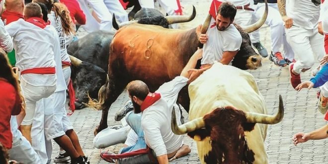 ورغم مخاطر السباق وتعرض عدة مشاركين للدهس من قبل قطيع الثيران، إلا أن الصليب الأحمر قال إن سبعة أشخاص أصيبوا ولا توجد كسور. وحقق مهرجان هذا العام سجلا تاريخيا للمصابين مع إصابة 28 شخصا وتعرض اثنين لكسور، وكان السبب الرئيسي في ذلك هو السرعة الفائقة لسباقات هذا العام.