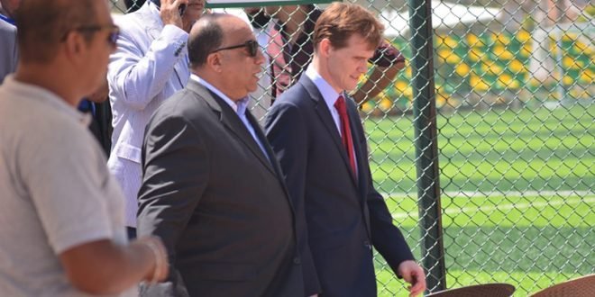وعقب انتهاء الزيارة منح محمد مصيلحي رئيس نادي الاتحاد السكندري، سفير بريطانيا، شعار النادي.