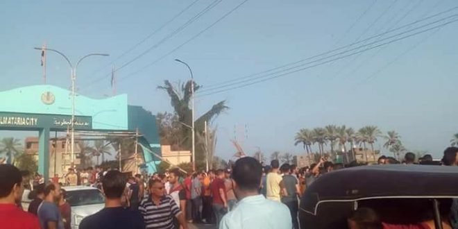 تجمهر العشرات من أهالى مدينة المطرية بمحافظة الدقهلية أمام مدخل المدينة وقطعوا الطريق ومنعوا خروج السيارات من الموقف المتجه إلى المنطقة الاستثمارية ببورسعيد، احتجاجًا على سوء حالة الطريق بعد أن فقدت المدينة أول امس 11 من أبناءه فى حادث بورسعيد الآليم أثناء التوجه إلى مقر عملهم.