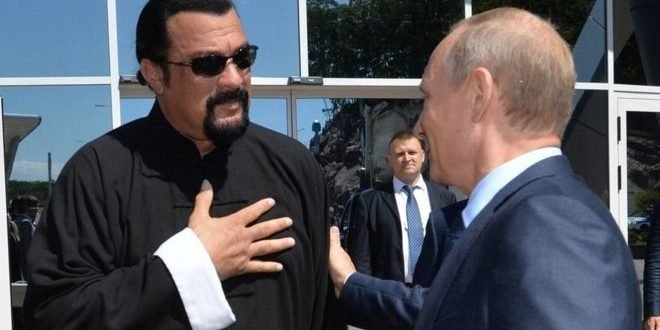 وأثنى ستيفن سيغال، 66 سنة، على الرئيس الروسي فلاديمير بوتين، واصفا بوتين بأنه “أحد أكبر زعماء العالمي الذين لا يزالون على قيد الحياة”. وعندما مُنح نجم هوليود الجنسية الروسية في 2016، أعرب عن أمله في أن يكون ذلك رمزا لبداية تحسن العلاقات بين موسكو وواشنطن.
