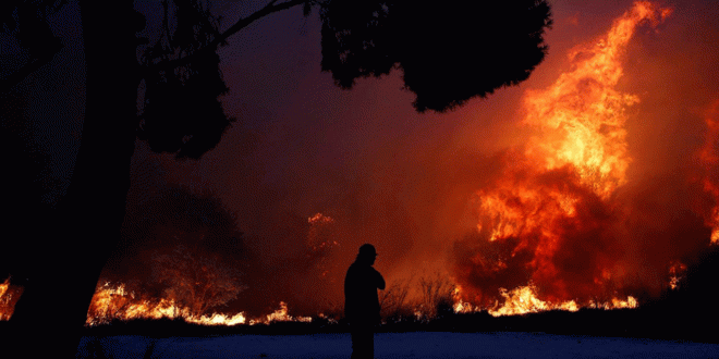 أخلت السلطات اليونانية قريتين على جزيرة إيفيا اليوم الأحد إثر اندلاع حريق غابات أذكته الرياح القوية.