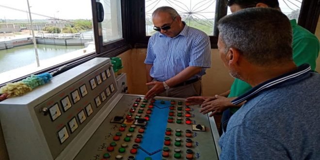 كما تفقد رئيس الهيئة العامة للنقل النهري حالة البوابات الأمامية والخلفية والجنابيات الأمامية والخلفية وكذلك أبراج المراقبة والحالة التشغيلية لها بالإضافة إلى متابعة الصنادل المحملة بالسلع الاستراتيجية والبضائع عبر الهويسين بترعة النوبارية والرياح البحيري.