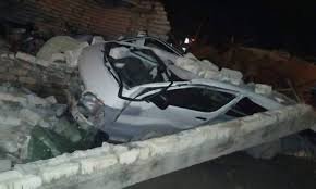 والانهيار سقط علي سيارة ملاكي ماركة«هيونداي»أدي لتهشمها.