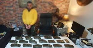 عقب تقنين الإجراءات تم ضبطه وبحوزته (عدد 180طربة من مخدر الحشيش وزنت 22,5 كيلو جرام – مبلغ مالى – هاتف محمول) ، وبمواجهته إعترف بحيازة للمواد المخدرة بقصد الإتجار .