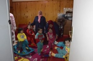 كذا التوعية بالالتزام بالإرشادات والمعايير الصادرة من وزارة الصحة والسكان بشأن الإجراءات الاحترازية للسلامة الشخصية ومكافحة العدوى، والتوعية بكيفية تكوين المحاليل المطهرة وشرح عملية التطهير داخل المنشأة، والتوجيه للعاملين المترددين علي المنشأة باتخاذ كافة الإجراءات الوقائية من بينها تغيير الملابس وبعد الأحذية، وارتداء الماسك الواقي وكيفية التخلص منه بعد الاستخدام، والتنبيه علي الألعاب الخاصة بالأطفال الرضع وحتي سن 6 سنوات، والتنبيه برفع السجاد عن الطرقات في الفترة الحالية لتيسير عملية تطهير الممرات بصورة دورية.