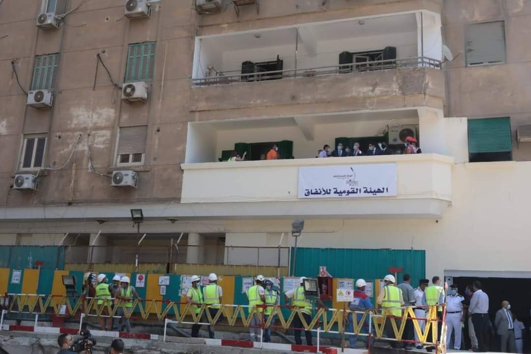 ثم صعد وزير النقل وسكان العمارة إلي داخلها حيث صرح الوزير للإعلاميين خلال تفقده الشقة التي استأجرتها الهيئة القومية للأنفاق بالعمارة والتي تقع أعلى الركن الذي تم إصلاحه مباشره أن الحمل المتحرك الموجود في هذه الشقة الآن يبلغ 5 أضعاف الحمل المصممة عليه والتي كانت عليه عندما كانت جديدة ثم لبى وزير النقل دعوة أحد سكان العمارة للترحيب بالوزير ورئيس وقيادات هيئة الأنفاق داخل شقته لتقديم كل الشكر والتقدير لوزارة النقل على التعامل المتميز خلال هذه المشكلة .