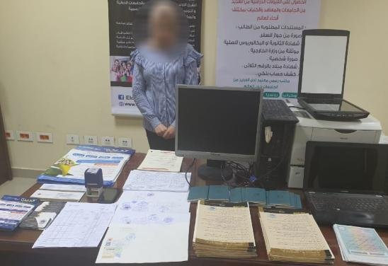 عقب تقنين الإجراءات تم إستهداف مقرى الشركة المشار إليهما، وأمكن ضبط إثنين من المتهمين بدائرتى قسمى شرطة قصر النيل وثان المنصورة، وعثر بحوزتهما على (جوازات السفر لأسماء أشخاص مختلفة – عقود إتفاق محررة مع وراغبى السفر للدراسة – كشوفات حسابات بنكية لأشخاص مختلفة مزورة بالكامل– مستندات شخصية وصور ضوئية لمستندات حاصة بأشخاص مختلفة – لوحة إعلانية بنر – كمية من أوراق الدعاية وأكلاشيه بإسم الكيان المشار إليه تفيد الإعلان عن الدراسة فى بعض الجامعات الأجنبية)، وكذا (2 هاتف محمول – جهاز كمبيوتر بمشتملاته، وجهاز لاب توب)،