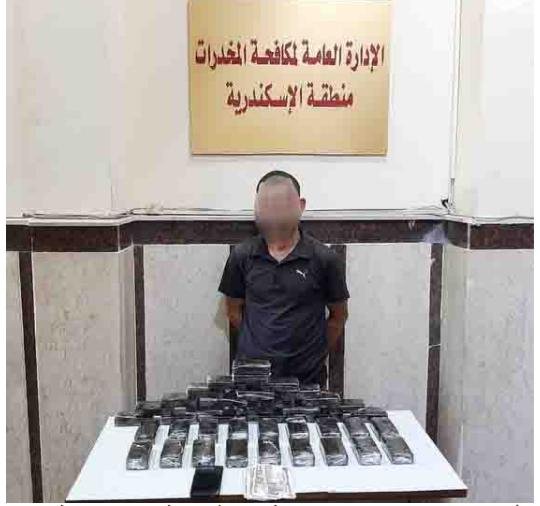 ضبط (40 طربة لمخدر الحشيش وزنت 10 كيلو جرام- مبلغ مالى – هاتف محمول) ، بحوزة (أحد الأشخاص- له معلومات جنائية) ، فى كمين أُعد لضبطه بدائرة قسم شرطة الدخيلة (بمحافظة الإسكندرية).