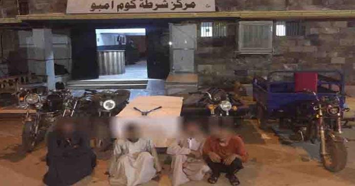 فقد أكدت معلومات وتحريات إدارة البحث الجنائى بمديرية أمن أسوان بالإشتراك مع قطاع الأمن العام قيام (4 أشخاص “لإثنين منهم لهم معلومات جنائية” جميعهم مُقيمين بدائرة مركز شرطة كوم أمبو) ،