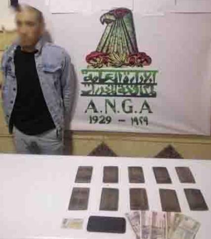 ضبط (عدد 10 طرب لمخدر الحشيش وزنت واحد كيلو جرام – مبلغ مالى– هاتف محمول) بحوزة (عاطل – مقيم بدائرة قسم شرطة إمبابة بالجيزة – له معلومات جنائية مسجلة) حال تواجده بدائرة قسم شرطة ثانى العامرية.
