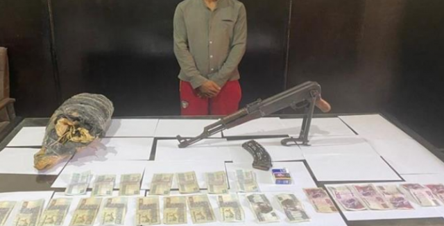 عقب تقنين الإجراءات تم إستهدافه وأمكن ضبطه ، وبحوزته (بندقية آلية وعدد من الطلقات – كمية من نبات البانجو – كمية من مخدر الحشيش – مبلغ مالى ) ،
