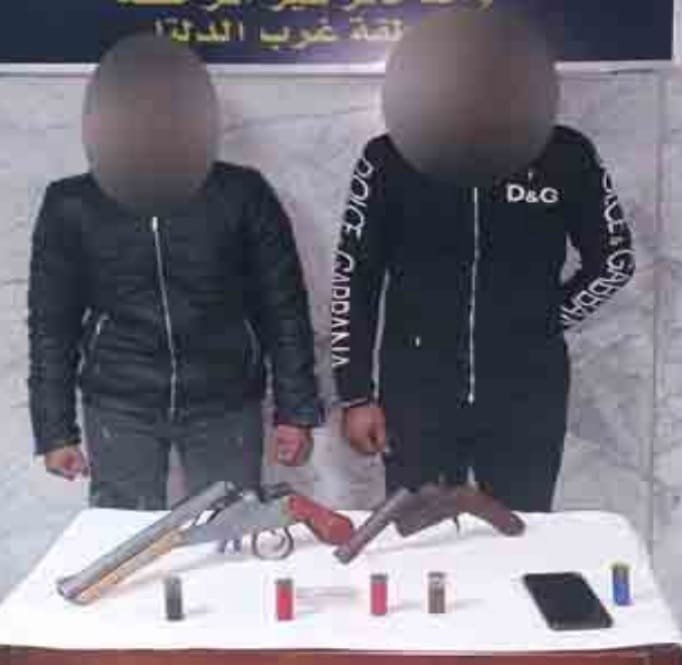 ضبط (عنصرين إجراميين) وبحوزتهما (عدد 2 فرد خرطوش – عدد من الطلقات النارية – هاتف محمول) .