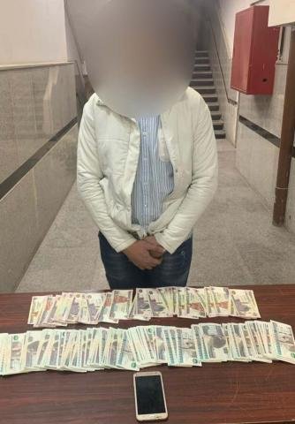 عقب تقنين الإجراءات أمكن إستهدافه وضبطه ، وبمواجهته بما جاء بأقوال الأول نفى علمه بملابسات الواقعة وأقر بأن المبلغ المالى المقلد من ضمن المبالغ المحصلة من العملاء.