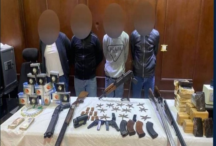 عقب تقنين الإجراءات تم إستهدافهم تنسيقاً والإدارة العامة لمباحث الجيزة وأمكن ضبطهم حال إستقلالهم سيارتين بدائرة قسم شرطة الأهرام، وبحوزتهم (كمية من مخدر الحشيش وزنت حوالى 13.400 كيلو جرام – عدد من الأقراص المخدرة – بندقية آلية – 4 بنادق خرطوش – 2طبنجة – 6 خزينة متنوعة – عدد من الطلقات مختلفة الأعيرة – 4هواتف محمولة – مبلغ مالى) ،