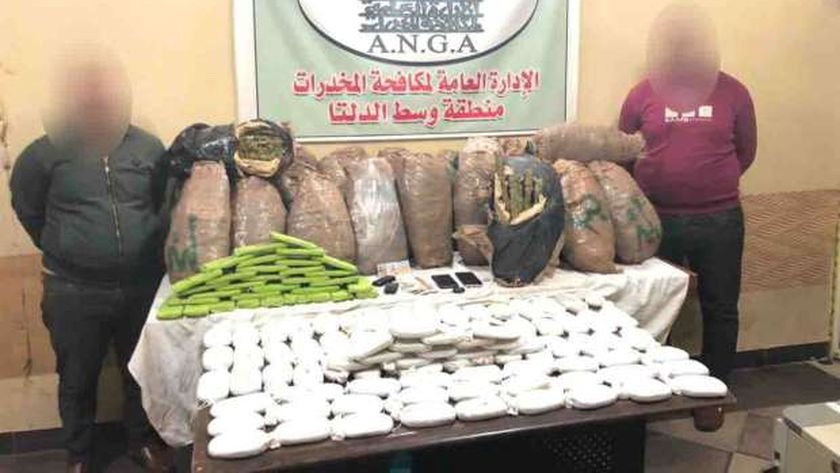 ضبط (شخصين “لأحدهما معلومات جنائية” مقيمان بدائرة مركز شرطة المنزلةبالدقهلية) فى كمين أُعد لضبطهما بدائرة مركز شرطة طنطا ، وبحوزتهما (عدد 40 لفافة لمخدر البانجو وزنت 100 كيلو جرام- عدد 120 طربة لمخدر الحشيش وزنت 24 كيلو جرام- سيارة – مبلغ مالى – 4 هواتف محمولة).
