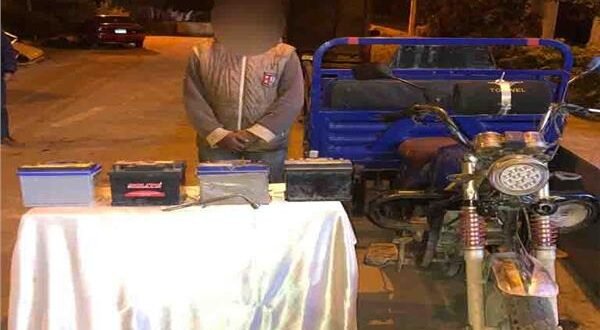 حيث تم ضبط (أحد الأشخاص – “له معلومات جنائية”) حال إستقلاله دراجة نارية “تروسيكل” ملك زوجته محمل عليه (عدد (4) بطارية سيارة “مجهولين المصدر” وعتلة حديدية).