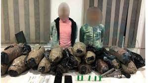 وعقب تقنين الإجراءات بالتنسيق مع قطاع الأمن العام أمكن ضبطهما حال استقلالهما سيارة أجرة “تاكسي”، قيادة أحدهما، وبحوزتهما (فرد محلي- عدد من الطلقات من ذات العيار – كمية من مخدر البانجو وزنت 45 كيلو جرام – مبلغ مالي – 2 هاتف محمول).