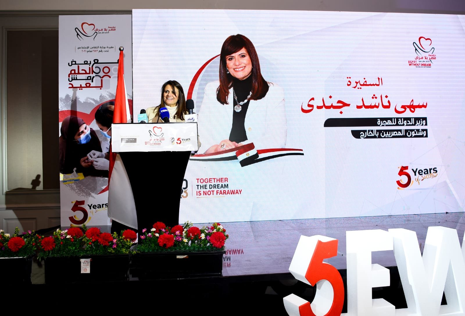 من ناحيتها، أوضحت السفيرة سها جندي، أن مؤسسة مصر بلا مرض جاءت انطلاقا من فكرة المسئولية المجتمعية للمصريين بالداخل والخارج من أطباء وعلماء في المجال الطبي والصيدلي ورغبتهم في أن يدعموا غير القادرين من أبناء وطنهم ويوفروا لهم الخدمة الطبية والرعاية الصحية دون أي مقابل مادي وكذلك توفير الأجهزة الطبية وتنظيم القوافل العلاجية، مشيدة بما تقدمه المؤسسة على مدار خمس سنوات منذ إطلاقها عام 2019، بالتعاون مع وزارة الهجرة.