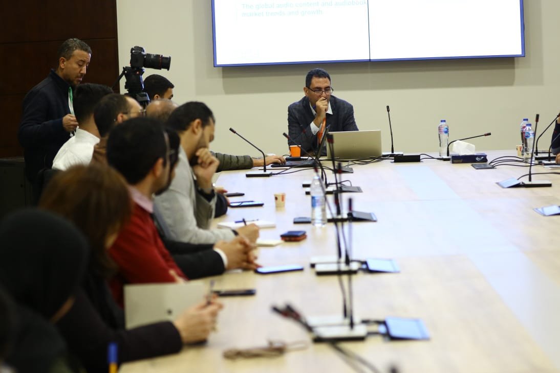 واستُخلصت تلك التوصيات بعد مناقشات دامت ساعة ونصف بورشة البرنامج المهني، تحدث خلالها الناشر أحمد روحيل، والذي استعرض تجربة نجاحه في النشر الرقمي للكتب الصوتية، حيث بدء سوق الكتب الصوتية العربية منذ ست سنوات ويوجد ما يقرب من 8000 عنوان على منصتين فقط، واستعرض مراحل دراسة سوق الكتاب الصوتي، والتي تتم على ست مراحل أساسية أولها اختيار كتاب مطبوع يمكن تحويله لصوتي، وعمل ورش عمل لاختيار أصوات تتناسب مع الكتاب، توفير استوديو لتسجيل الكتب، العرض على مصحح لغوي لضمان القراءة الصحيحة، ثم التعديلات والمونتاج ليصبح لدينا منتج نهائي جيد لكتاب صوتي.