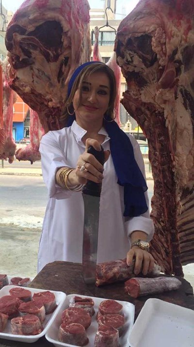 تداول نشطاء مواقع التواصل الاجتماعي في مصر عدة صور لـ” جزارة” تقوم بذبح الأضاحي خلال العيد في مدينة المنصورة في دلتا مصر.