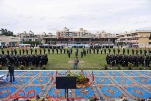 هذا وبدأت مراسم الاحتفال بالسلام الجمهوري تلاه العروض العسكرية وعروض الإشارات البحرية واللياقة البدنية، وتكريم الطلاب الأوائل.