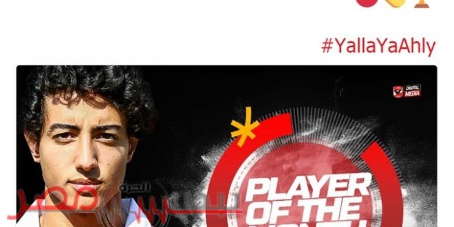وقال “آدمن” القلعة الحمراء، عبر الموقع الرسمي للنادي بموقع التواصل الاجتماعي “تويتر”، مساء اليوم : “بناءً على تصويت الجمهور نسر الشهر هو لاعبنا محمد هاني، تهانينا لك”.