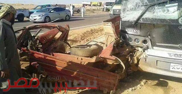 مصرع 6 أشخاص مساء الأحد ,وأصيب 26 آخرون في حادث تصادم حافلة تابعة لشركة غرب الدلتا, بسيارة نقل, عند (الكيلو 128) بنطاق مركز ومدينة الضبعة على طريق (الإسكندرية – مطروح) الساحلي.