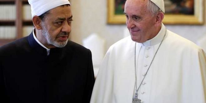 صحيفة الإندبندت البريطانية تناقش لقاء البابا فرانسيس، بابا الفاتيكان، والإمام أحمد الطيب، شيخ الأزهر الشريف، خلال مؤتمر الأزهر العالمي للسلام، تحت عنوان “البابا فرانسيس يزور القاهرة، سعيًا لجلب السلام بين المسيحيين والمسلمين”.