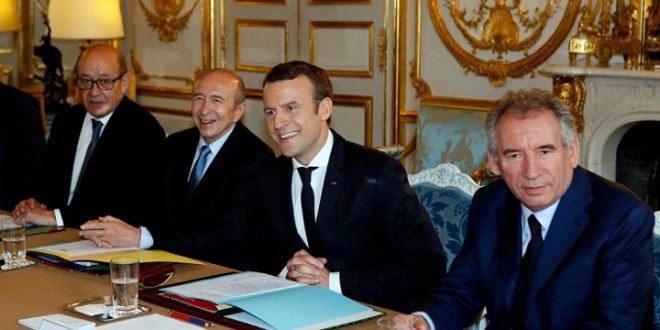 ترأس الرئيس الفرنسي إيمانويل ماكرون الخميس 18/مايو 2017 أول اجتماع لمجلس الوزراء غداة تشكيل حكومة تعكس عملية إعادة تشكيل المشهد السياسي الفرنسي، وحضّ الوزراء على “التضامن”.